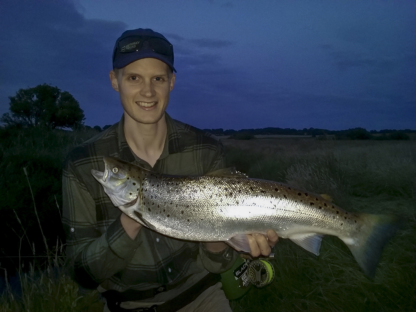 Jeg var mere heldig og indledte sommersæsonen i Trend med en fin fisk på 66 cm og 3,1 kg. Den tog min egen Simple Shrimp st. 8 – opfundet for 55 år siden og still fishing strong. Du kan læse mere om fluen i Poul Friis’ fine bog: ”Danske Fluer”