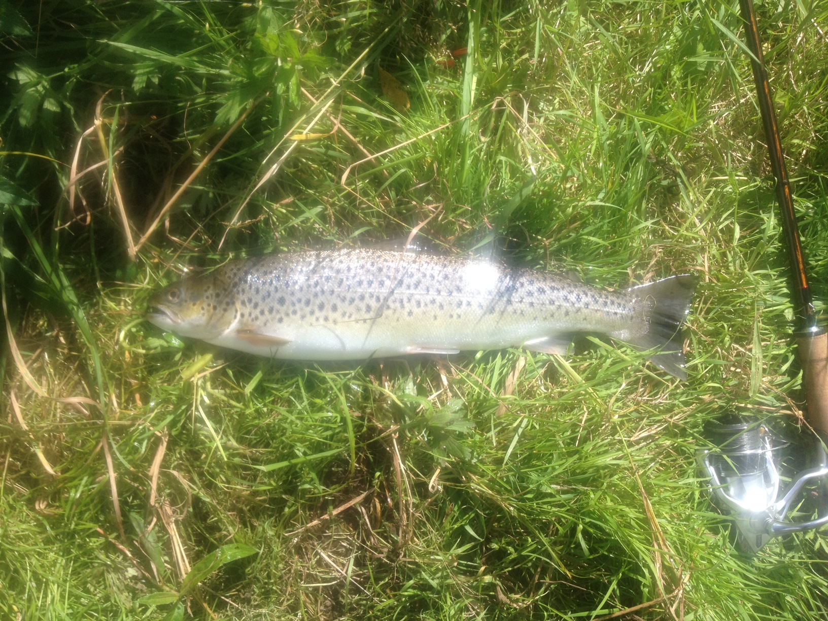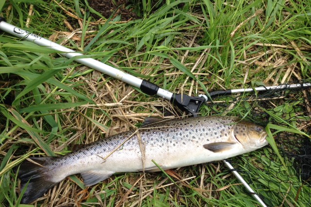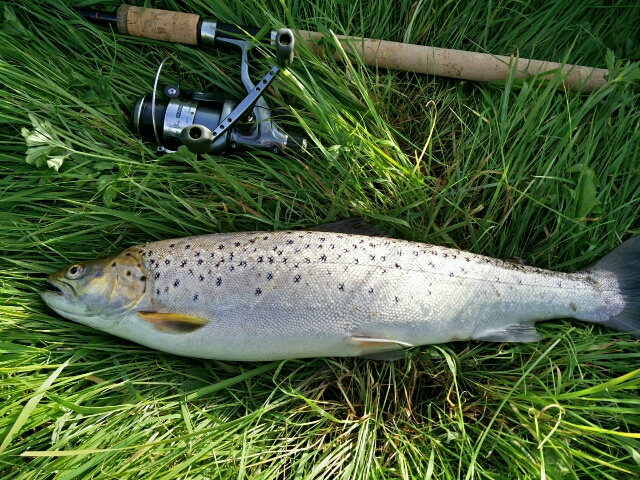 I søndags var jeg lille smut ude ved åen, som gik over alle forventninger. Efter de først 50 meters fiskeri havde jeg allerede fanget den første havørred på 45 cm.