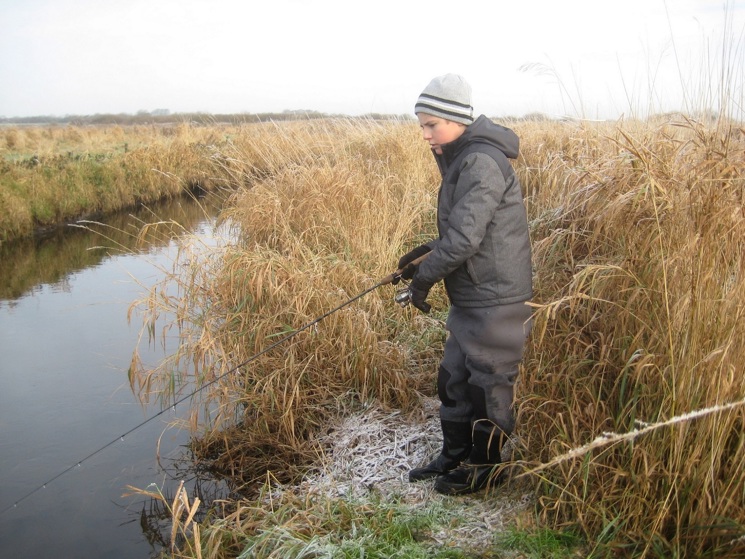 I DAG VAR SIDSTE PROGRAMSATTE TUR FOR VORES JUNIORER. JEG HAVDE "VAGTEN" MEN DET VAR KUN EMIL FRAGTDRUP SOM VILLE MED. DET SKULLE NU IKKE FORHINDRE EN GOD DAG VED ÅEN I LIDT KOLDT, MEN RIGTIG FLOT VEJR. VI VILLE EGENTLIG HAVE FISKET UDE VED GUNDERUPGÅRDEN FOR AT SE OM DER SKULLE VÆRE LISTET EN LILLE BLANK GRØNLÆNDER OP I KULDEN, MEN HER VAR DER ET JAGT SELSKAB I GANG NEDE VED ÅEN. SÅ I STEDET BLEV DET DEN GAMLE HYTTE VI STARTEDE VED. DA VI HOLDT PÅ PARKERINGS PLADSEN KUNNE VI SE DEN ØVERSTE DEL AF DØREN TIL HYTTEN STOD ÅBEN ( SÅ HER EN LILLE OPFORDRING TIL DEM DER BRUGER HYTTEN OM AT SIKRE SIG DEN ER LUKKET FORSVARLIGT/SKUB LIGE GODT PÅ FOR AT SIKRE DEN IKKE SPRINGER OP ) DA VI STOD OG RIGGEDE TIL SÅ EMIL HVAD HAN TROEDE VAR EN MÅR KOMME OP FRA BRINKEN AF ÅEN OG DA VI KIKKEDE UD OVER RÆKVÆRKET PÅ TERRASSEN SAD DEN LIGE UNDER OS OG KIKKEDE OP MINKEN ALTSÅ. DET VAR EN BEIGE FARVET MINK SOM IKKE VAR SÆRLIGT BANGE. DEN LØB NED TIL ÅEN IGEN OG FORSVANDT. VI FISKEDE TIL MIDDAG UDEN AT MÆRKE NOGET SOM HELST. BLEV ENIGE OM AT SPISE MED BRAGT MAD OG SÅ KØRE UD TIL GUNDERUP GÅRDEN FOR AT SE OM JAGTEN VAR AFSLUTTET. DET VAR DEN, SÅ VI FISKEDE HER TIL KL. 14:30 EMIL MENTE HAN HAVDE ET ENKELT NAP OG DET VAR DET.