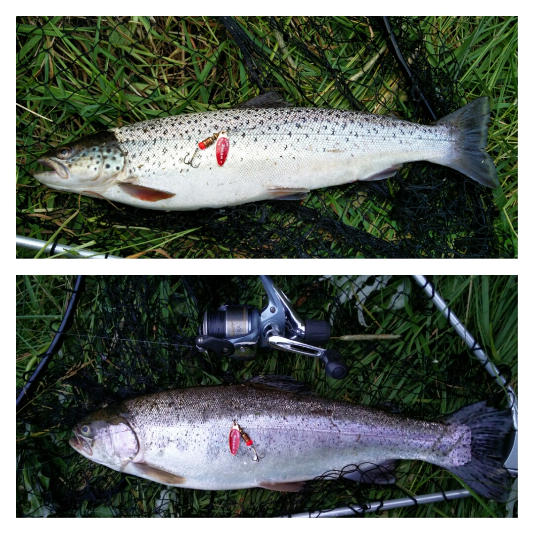 Kanon dag ved Trend Aa! startede mit fiskeri ca kl 8 og efter en 20 minutters fiskeri, hugger der en flot fisk på 4 kg og 69 cm. Har en kanon fight med den, som tager en 15 minutters tid at få gjort træt. Efterfølgende fisker jeg 5 min, hvor der så hugger en flot han fisk på 3,6 kg 72 cm. ! Fanget på mepps st. 3 optrøms
