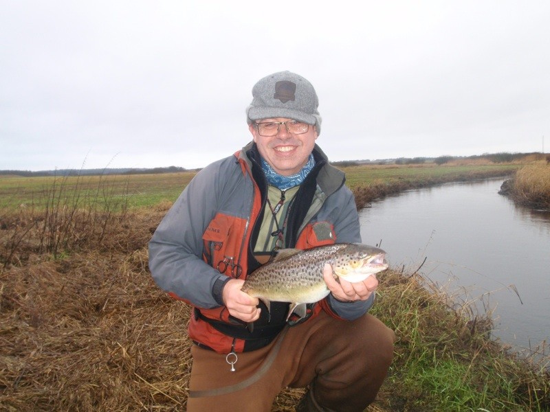 Hej idag søndag var Johnny Nielsen og jeg Michael Hansen igen kørt fra Holstebro tidlig for at se om vi kunne få en grøndlænder til at tage vores flue. Vi startede ved den gamle hytte efter vi havde fisket hele strækker over uden fisk to vi op til hyldebjerg bro stykke blev igen fisket igennem af os uden kontakt til noget nu tog vi en gang varm suppe og vente næsen hjem af igen men en dejlig dag ved åen. Nu sker der sikkert snart noget i åen.